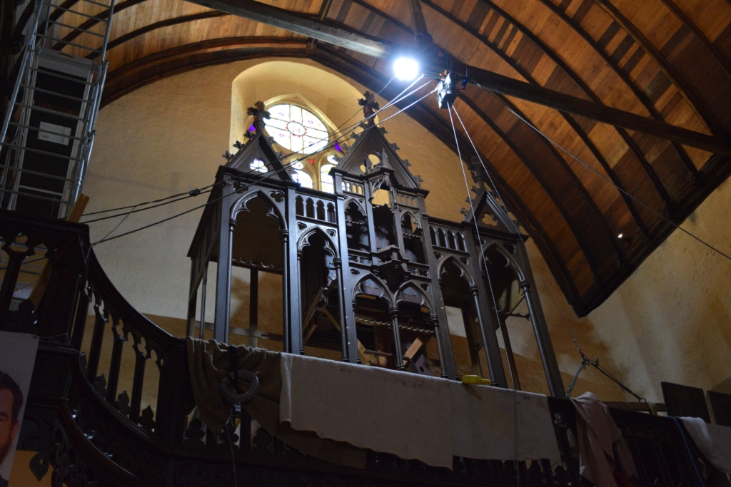 Depuis le début du mois de mars 2025, l’orgue Cavaillé-Coll est remonté pièce par pièce par l’entreprise sur la tribune de l’église Sainte-Croix. C’est sur cette même tribune que l’orgue était installé il y a plus de 20 ans, quand il a été démonté pour les travaux de la toiture de l’église.